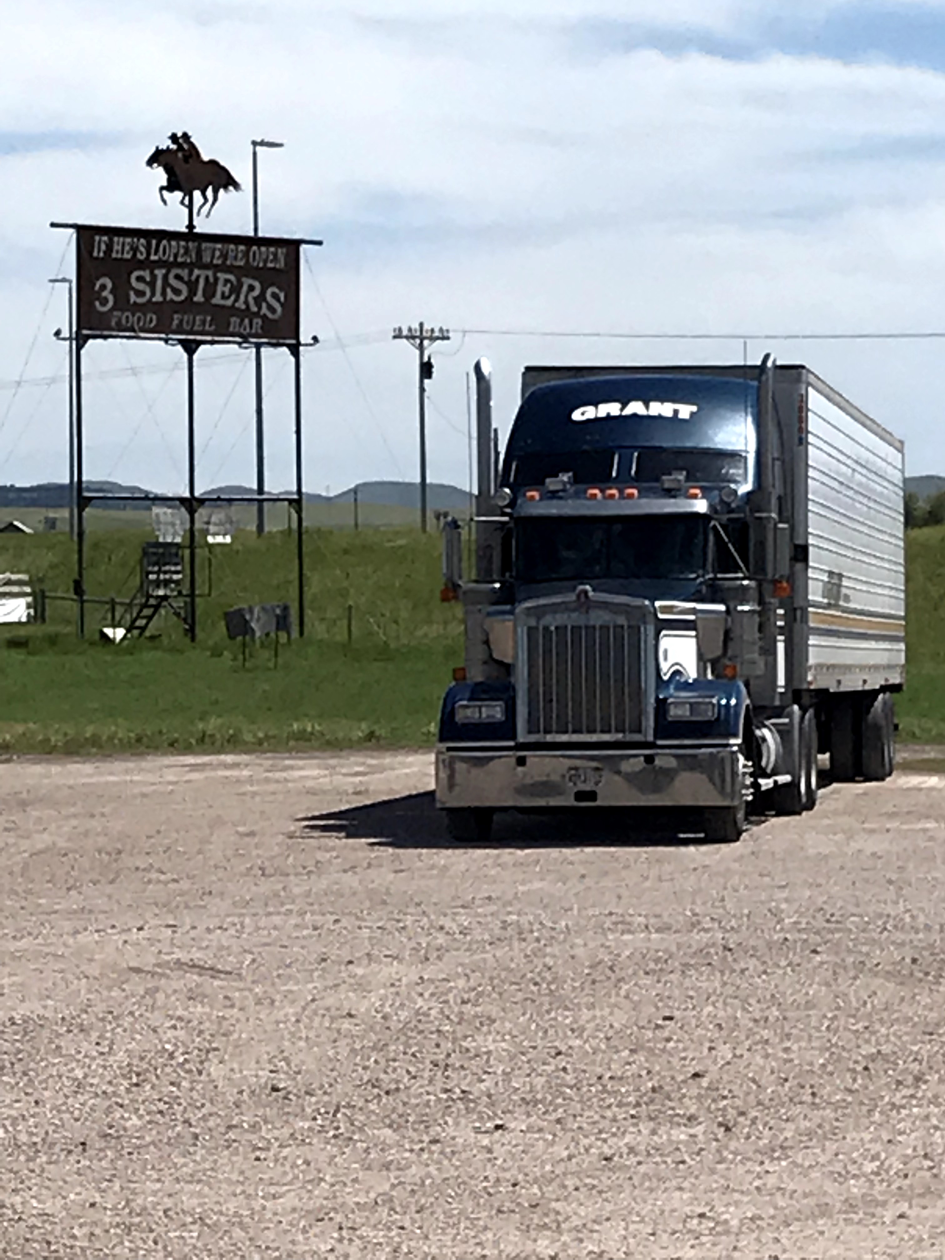 Oh, another highlight was the 3-Sisters truck stop. ‘If he’s lopen we’re open’ reads the sign – and the horse was indeed lopen, so I stopped in for a slice of rhubarb pie. Delicious! It provided a nice energy boost for the final 10 miles into Lusk.