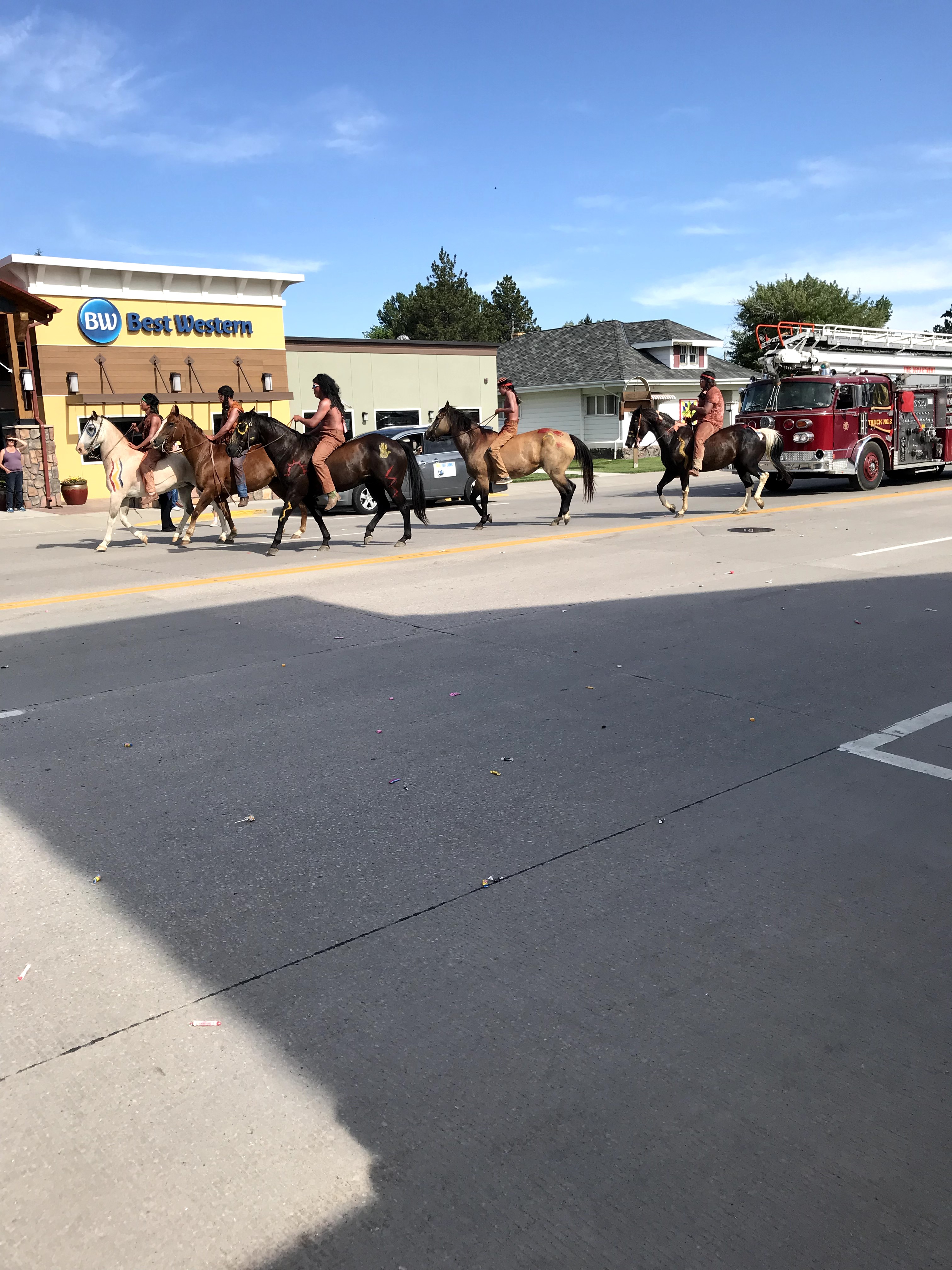 And wouldn’t you know it, yet another highlight was awaiting in Lusk – the annual Rawhide Days Parade. Most of the town was in the parade, so our bicycling crew made up a vast majority of the parade viewers. If the rest of the folks from Lost Springs would have attended (those not at the bar), parade viewership would have noticeably increased. Cowboys, Indians, Fire Trucks, Tow Trucks, Flat Bed Trucks, and the town sheriff – your typical Wyoming summer parade. And for what it’s worth, the parade Indians seemed to be having way more fun than the parade Cowboys. I’m not sure what to make of that.