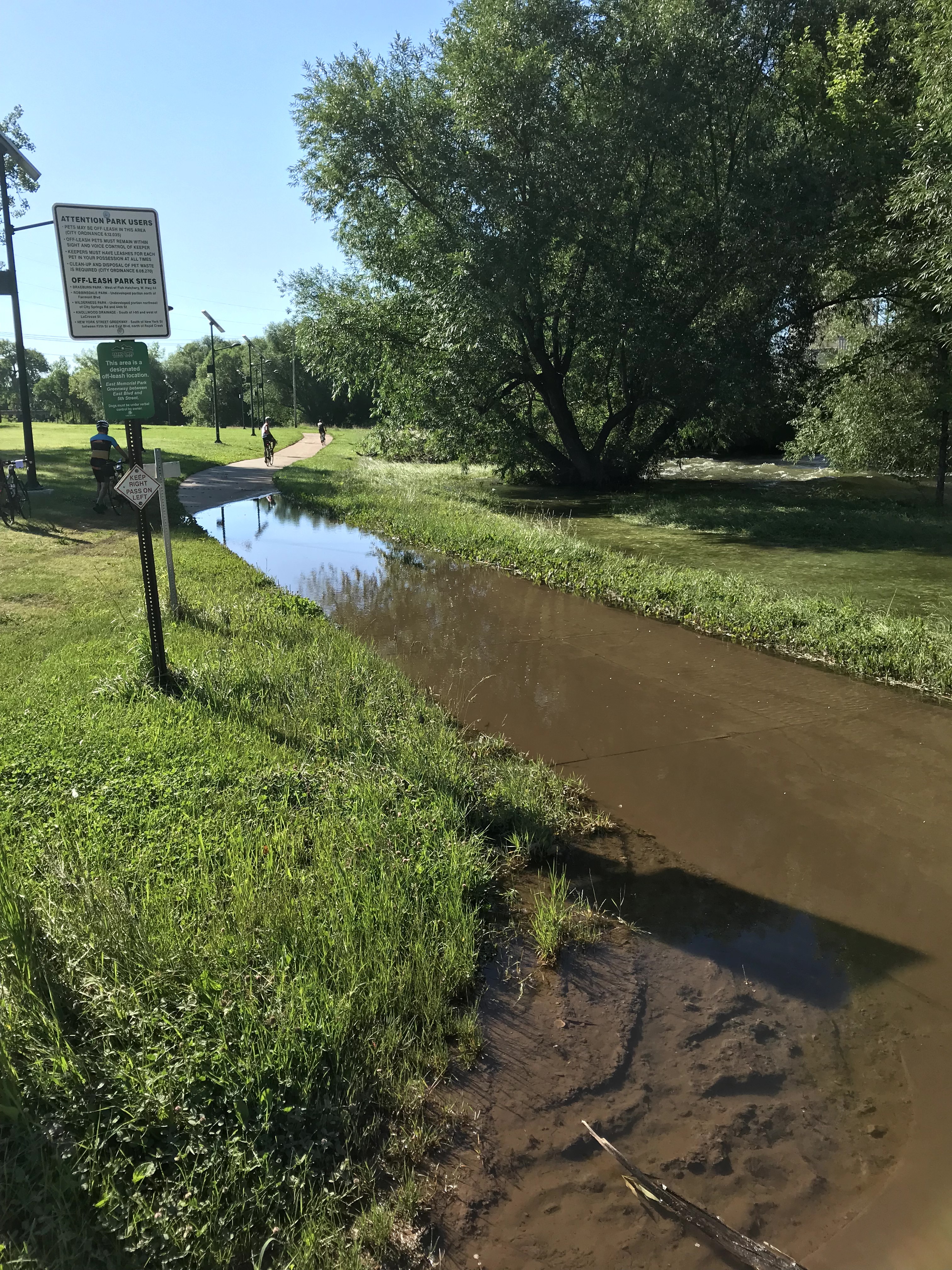 All the rivers on the tour this year have been running high and strong. Rapid Creek, which flows through Rapid City, was no exception. We had to make a few bike path water detours on our way out of town in the morning.