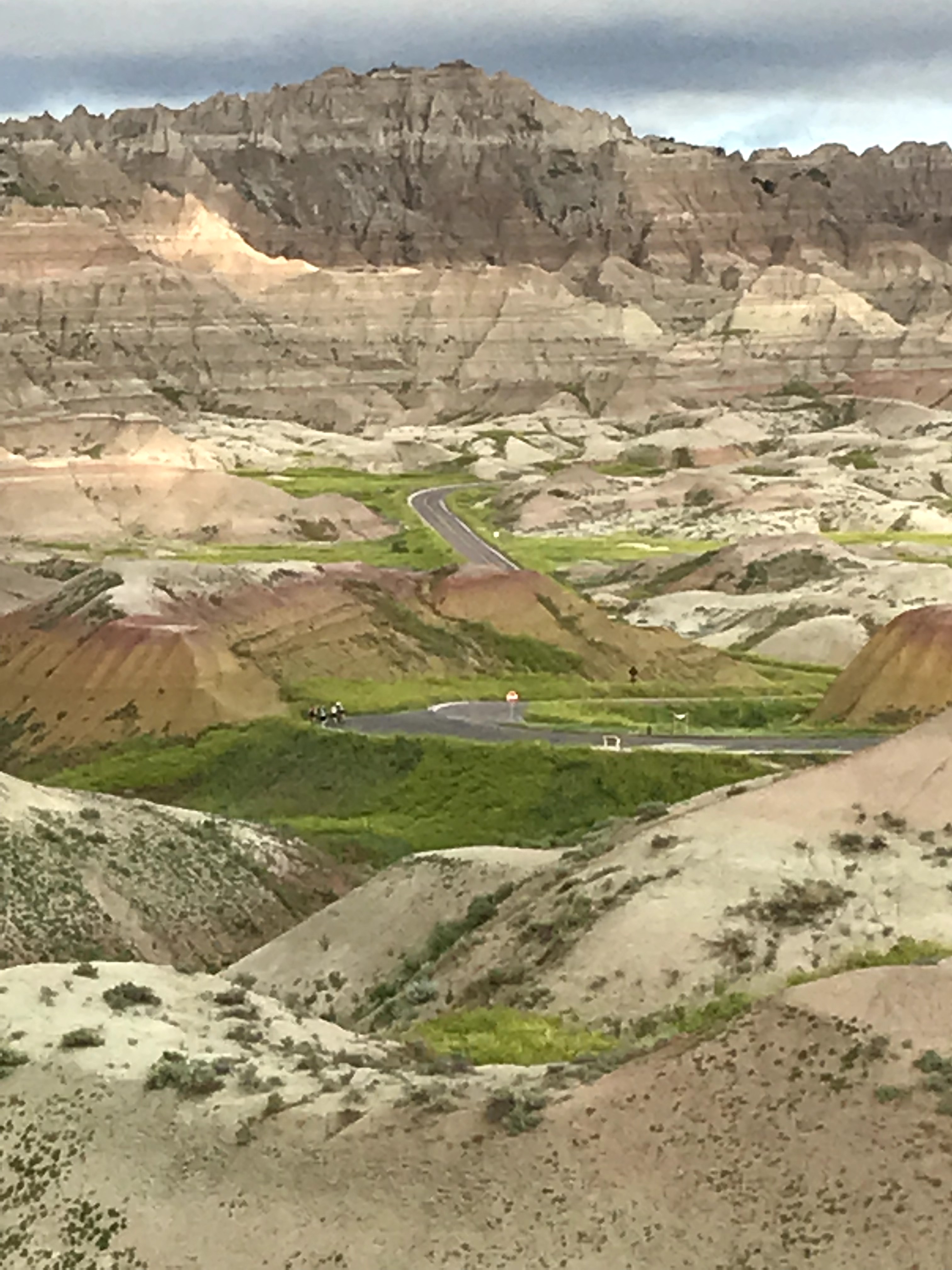 Pictures capture only a slight sense of magnitude of Badlands Park. An otherwise open grass prairie suddenly has it’s underbelly exposed in layers of geologic rock strata and spires. A windy road magically weaves a path over awesome vistas, then descends through rocky canyons that you can almost reach out and touch. One of the best bike rides I’ve ever experienced, and certainly a highlight of the tour.