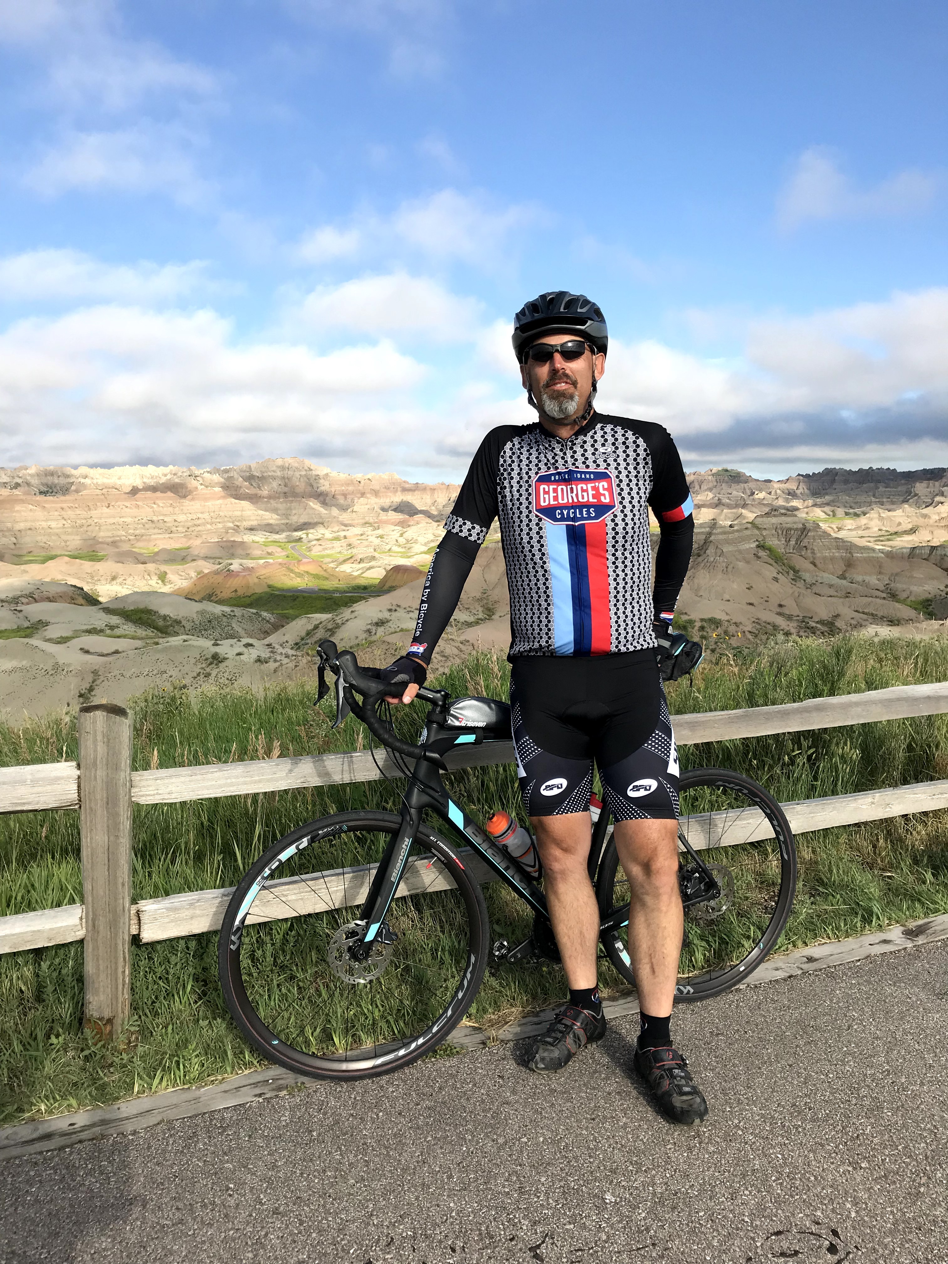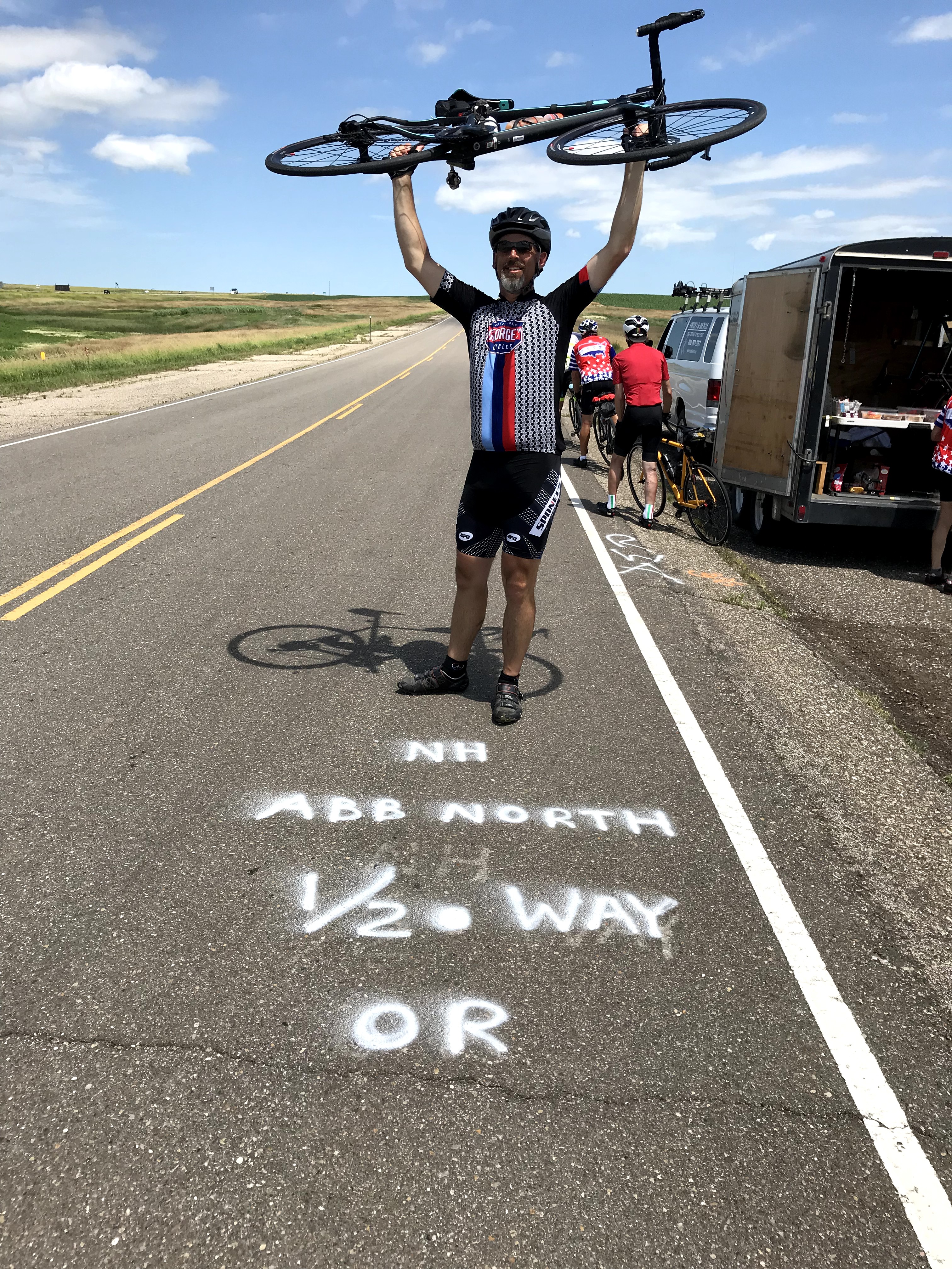 A memorable 100 mile day. A morning ride through the other-worldly Badlands National Park. And an afternoon celebration and photo-op at the halfway point on this coast-to-coast trip.