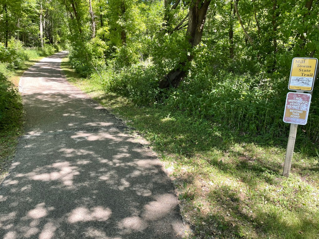 Jax parked the car at an old rail stop building midway along the trail in Elysian and joined the trail for several miles, doubling back to fetch the car. We were tempted to leave the car behind, but figured it might prove useful for the rest of the trip. Alas, the Sakatah trail came to an end at the town of Faribault, but a few low-travelled and wide-shouldered roads led to a reconnection of the rail-trail line, now called the Mill Towns State Trail.