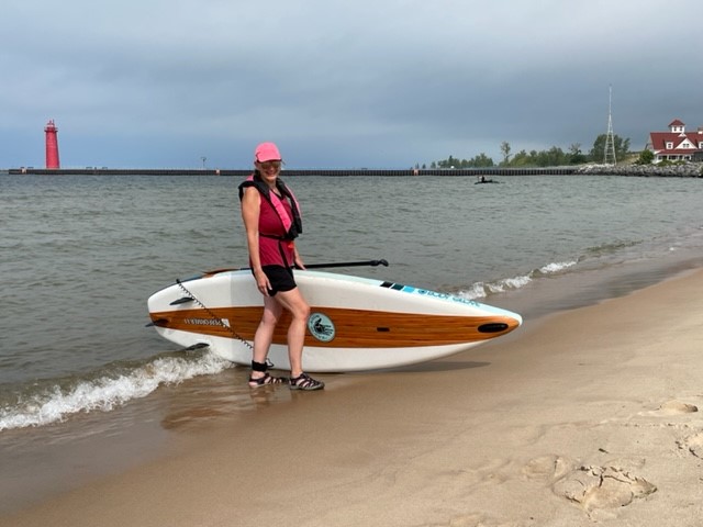 A breezy 20 mile warmup ride was the agenda for today, including a leisurely stroll through Pete Marquette Park where Jax broke out the paddleboard and added a windy Lake Michigan to her conquered bodies of water.