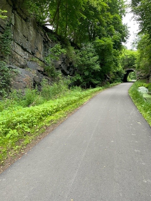 And one of these sharp rocks made its way into my front tire for the first flat of this 2023 segment. A special shout out to the Mohawk Valley Alpiners club for strategically placing a nice bench alongside the trail right where I needed it.