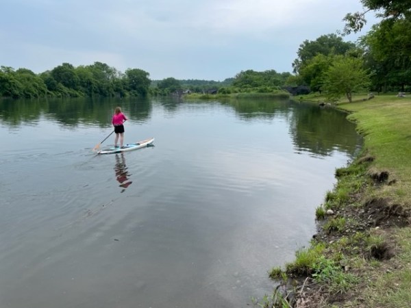 The best stop of the day was at a creek-side park, where Schoharie Creek meets the Mohawk River / Canal. Jax had a beautiful paddleboard ride amongst aqueduct ruins from the old canal. And we had the whole park to ourselves… except for the bald eagle that flew by low and waived hello while eyeing our lunch. The passing cars, trucks and trains were whizzing by too quickly to enjoy the beauty.