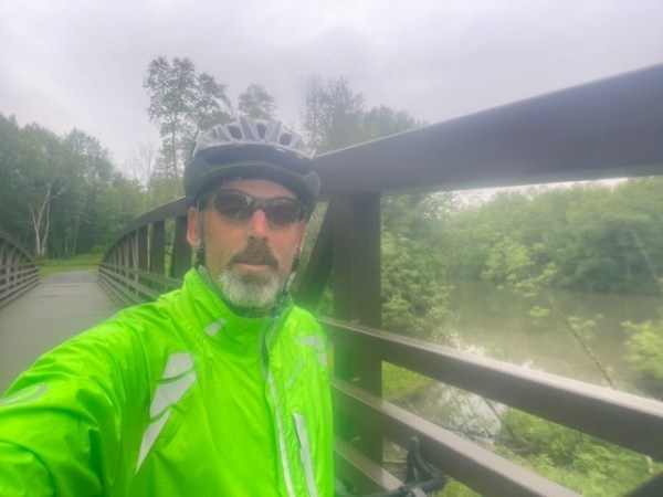 Today’s ride of 62 miles started with rain. 55 degrees, and excellent air quality :). And an immediate wake-up call with steep hills right off the start – climbing up and away from Saratoga Lake on quiet farm roads. I had to remember how to frequently shift gears, using all 24. A radical departure from the canal paths which are incredibly flat, as you might imagine. By comparison, a long ride on a canal trail might use 3 or 4 gears total.