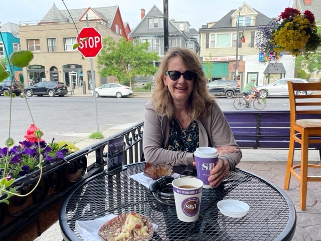 Alas, the gravel turned to pavement near Rochester, where the canal makes an arc around the south side of the city. The trail winds thru industrial zones, city parks, and neighborhood back yards. In the suburb of Pittsford, Jax and I enjoyed lunch under a covered pavilion with dry Adirondack chairs.
