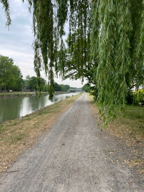 The crushed gravel canal trail can handle quite a bit of rain. It actually absorbs the rain, meaning far less splash-back than a paved surface. And it’s so heavy packed, from 200+ years of use; ruts, dips, cracks and potholes are virtually non-existent.