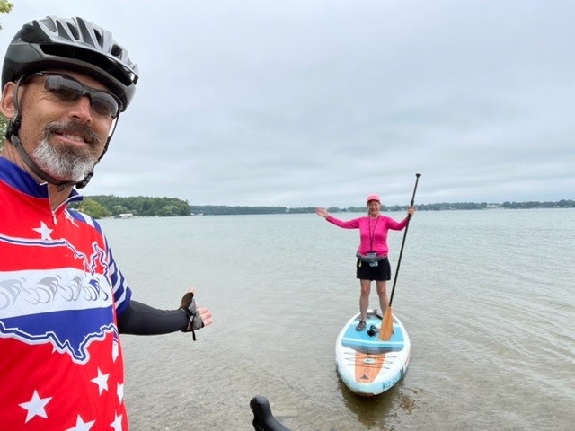 No pedaling today, paddling instead. A scheduled extra day allowed us to explore Lake Canandaigua. The 4th largest of the 11 glacially formed Finger Lakes of New York, Lake Canandaigua is 16 miles long and 1.5 miles wide. Jax paddled boarded both the North and South shore, finding the southern waters to be calmer and clearer today.